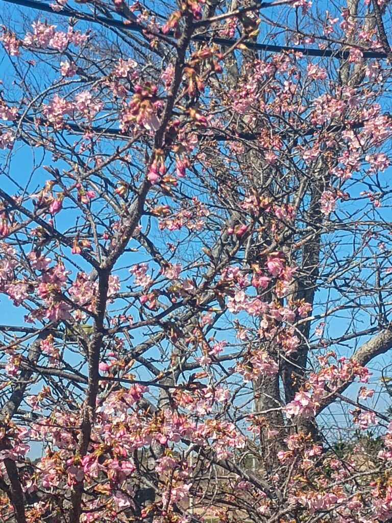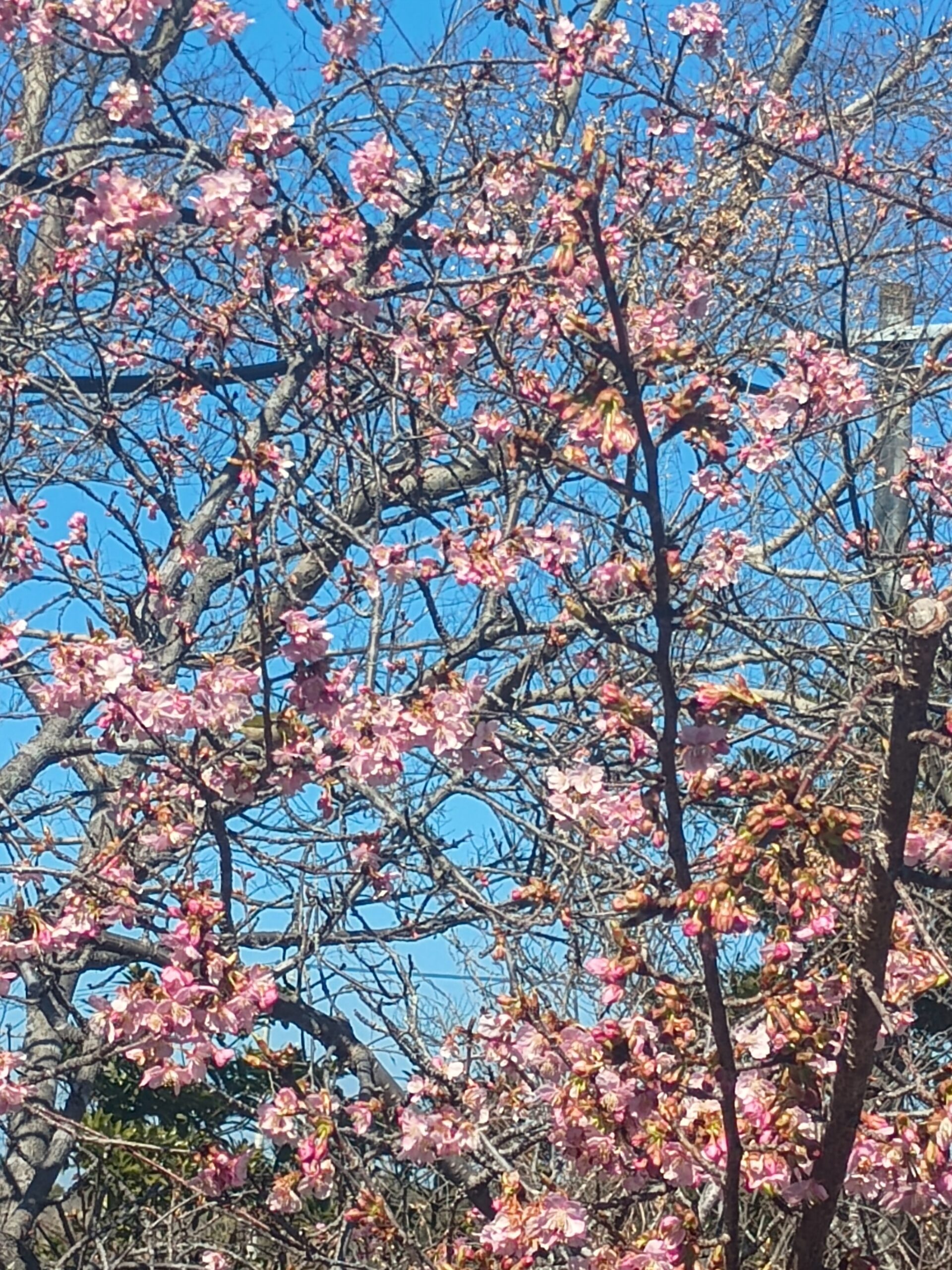 少し霞んだ富士山!河津桜はぼちぼちでございます。
